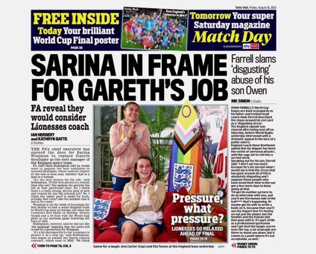 据英国各大权威媒体报道,随着荷兰籍主帅维格曼率领英格兰女足夺得欧洲杯并杀进世界杯决赛,英足总已开始考虑让她接替索斯盖特的工作——如果明年欧洲杯“南门”还是无法取得突破,合同就将到此结束。英格兰女足将在周日的女足世界杯决赛中面对西班牙,有望完成欧洲杯和世界杯的大赛两连冠。去年在温布利捧起欧洲杯,让女足在英国掀起了一股热潮,而且追随男足英超的脚步,女足英超也很快地成为了女足世界的第一联赛。