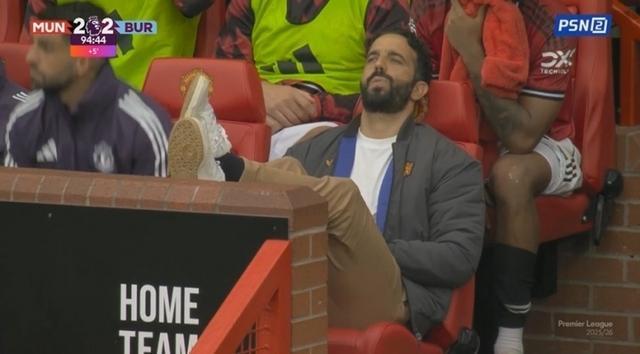 回看慢镜头之后,主裁判判罚点球,费尔南德斯抱过球准备主罚。此时,阿莫林将双脚放在栏杆上,甚至没有看向费尔南德斯。琼斯表示,“阿莫林无法观看,几乎盯着前方发呆。”